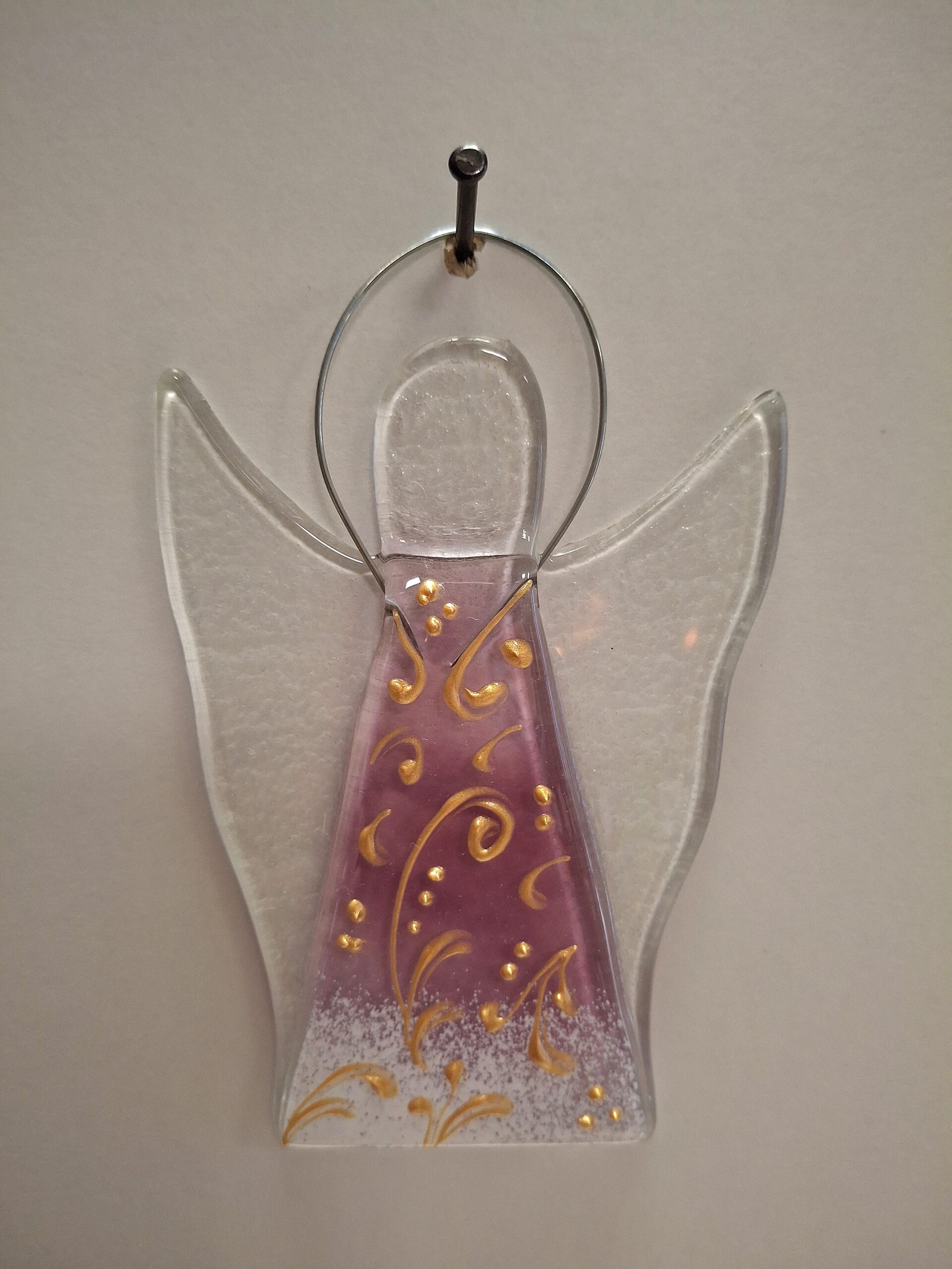 Schutzengerl aus Glas mit Draht zum Hängen rosè